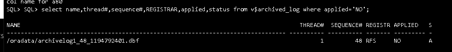 [oracle@db01:/oradata/archivelog]$ rm -f 1_47*备库开启同步进程