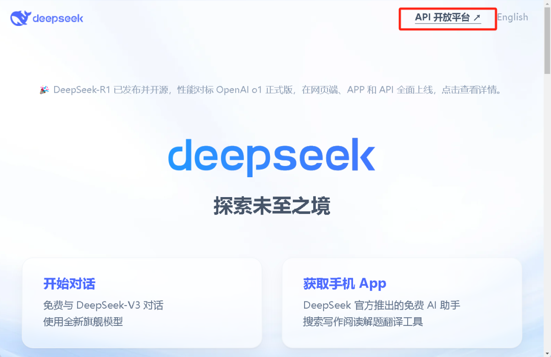 登录www.deepseek.com,注册登录后点击左上角"API开放平台"