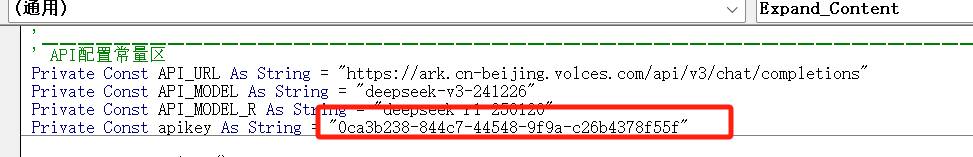 Private Const API_URL As String = "https://ark.cn-beijing.volces.com/api/v3/chat/completions"Private Const API_MODEL As String = "deepseek-v3-241226"Private Const API_MODEL_R As String = "deepseek-r1-250120"Private Const apikey As String = "填写你的火山引擎的apikey"Function CallDeepSeekAPI(api_key As String, inputText As String)Dim API As StringDim SendTxt As StringDim Http As ObjectDim status_code As IntegerDim response As StringMsgBox "开始调用Deepseek V3进行总结,耐心等待......"API = API_URLSendTxt = "{""model"": """ & API_MODEL & """, ""messages"": [{""role"":""system"", ""content"":""你是word文案助手""}, {""role"":""user"", ""content"":""" & inputText & """}], ""stream"": false}"Set Http = CreateObject("WinHttp.WinHttpRequest.5.1")With Http.Open "POST", API, False.setRequestHeader "Content-Type", "application/json".setRequestHeader "Authorization", "Bearer " & api_key.send SendTxtstatus_code = .Statusresponse = .responseTextEnd With' 弹出窗口显示 API 响应(调试用)' MsgBox "API Response: " & response, vbInformation, "Debug Info"If status_code = 200 ThenCallDeepSeekAPI = responseElseCallDeepSeekAPI = "Error: " & status_code & " - " & responseEnd IfSet Http = NothingEnd FunctionFunction CallDeepSeekRAPI(api_key As String, inputText As String)Dim API As StringDim SendTxt As StringDim Http As ObjectDim status_code As IntegerDim response As StringMsgBox "开始调用Deepseek R1进行总结,耐心等待......"API = API_URLSendTxt = "{""model"": """ & API_MODEL_R & """, ""messages"": [{""role"":""system"", ""content"":""你是word文案助手""}, {""role"":""user"", ""content"":""" & inputText & """}], ""stream"": false}"Set Http = CreateObject("WinHttp.WinHttpRequest.5.1")With Http.Open "POST", API, False.setRequestHeader "Content-Type", "application/json".setRequestHeader "Authorization", "Bearer " & api_key.send SendTxtstatus_code = .Statusresponse = .responseTextEnd With' 弹出窗口显示 API 响应(调试用)' MsgBox "API Response: " & response, vbInformation, "Debug Info"If status_code = 200 ThenCallDeepSeekRAPI = responseElseCallDeepSeekRAPI = "Error: " & status_code & " - " & responseEnd IfSet Http = NothingEnd FunctionSub DeepSeekV3()Dim api_key As StringDim inputText As StringDim response As StringDim regex As ObjectDim matches As ObjectDim originalSelection As Objectapi_key = apikeyIf api_key = "" ThenMsgBox "Please enter the API key."Exit SubElseIf Selection.Type <> wdSelectionNormal ThenMsgBox "请选择文本."Exit SubEnd If' 保存原始选中的文本Set originalSelection = Selection.Range.DuplicateinputText = Replace(Replace(Replace(Replace(Replace(Selection.text, "\", "\\"), vbCrLf, ""), vbCr, ""), vbLf, ""), Chr(34), "\""")response = CallDeepSeekAPI(api_key, inputText)If Left(response, 5) <> "Error" ThenSet regex = CreateObject("VBScript.RegExp")With regex.Global = True.MultiLine = True.IgnoreCase = False.Pattern = """content"":""(.*?)"""End WithSet matches = regex.Execute(response)If matches.Count > 0 Thenresponse = matches(0).SubMatches(0)response = Replace(Replace(response, """", Chr(34)), """", Chr(34))response = Replace(response, "\n\n", "\n")response = Replace(response, "\n", vbCrLf)response = Replace(response, "*", "")response = Replace(response, "#", "")' 取消选中原始文本Selection.Collapse Direction:=wdCollapseEnd' 将内容插入到选中文字的下一行Selection.TypeParagraph ' 插入新行Selection.TypeText text:=response' 将光标移回原来选中文本的末尾originalSelection.SelectElseMsgBox "Failed to parse API response.", vbExclamationEnd IfElseMsgBox response, vbCriticalEnd IfEnd SubSub DeepSeekR()Dim api_key As StringDim inputText As StringDim response As StringDim regex As ObjectDim matches As ObjectDim originalSelection As Objectapi_key = apikeyIf api_key = "" ThenMsgBox "Please enter the API key."Exit SubElseIf Selection.Type <> wdSelectionNormal ThenMsgBox "请选择文本."Exit SubEnd If' 保存原始选中的文本Set originalSelection = Selection.Range.DuplicateinputText = Replace(Replace(Replace(Replace(Replace(Selection.text, "\", "\\"), vbCrLf, ""), vbCr, ""), vbLf, ""), Chr(34), "\""")response = CallDeepSeekRAPI(api_key, inputText)If Left(response, 5) <> "Error" ThenSet regex = CreateObject("VBScript.RegExp")With regex.Global = True.MultiLine = True.IgnoreCase = False.Pattern = """content"":""(.*?)"""End WithSet matches = regex.Execute(response)If matches.Count > 0 Thenresponse = matches(0).SubMatches(0)response = Replace(Replace(response, """", Chr(34)), """", Chr(34))response = Replace(response, "\n\n", "\n")response = Replace(response, "\n", vbCrLf)response = Replace(response, "*", "")response = Replace(response, "#", "")' 取消选中原始文本Selection.Collapse Direction:=wdCollapseEnd' 将内容插入到选中文字的下一行Selection.TypeParagraph ' 插入新行Selection.TypeText text:=response' 将光标移回原来选中文本的末尾originalSelection.SelectElseMsgBox "Failed to parse API response.", vbExclamationEnd IfElseMsgBox response, vbCriticalEnd IfEnd Sub