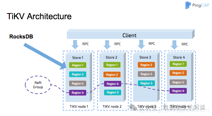 个备副本。同样所有副本分散到不同机架的服务器上。不一样的地方是 TiKV