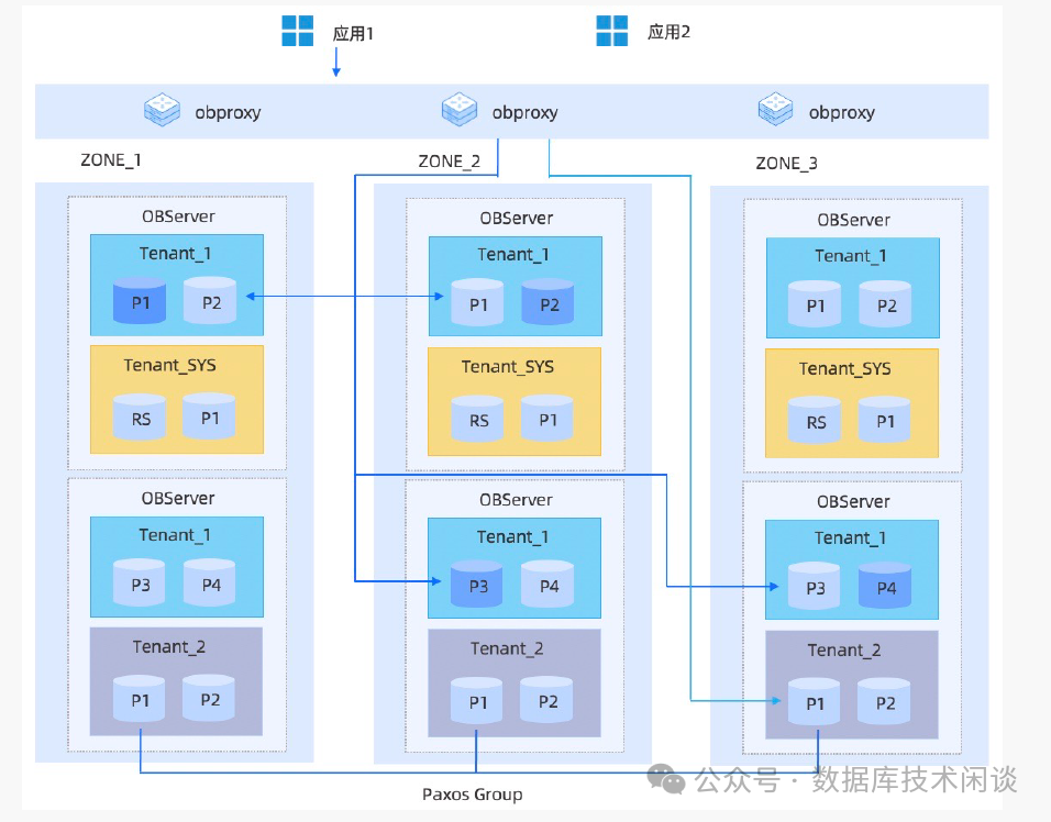 的多副本分布特征非常工整,可以说强迫症用户看了会感觉非常舒服。OB 的备副本可以提供只读服务,所以解决方案里可以做读写分离。此外,OB 也有自己的复制表方案,上一篇介绍过就不赘述了。
