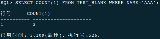 SQL> SELECT COUNT(1) FROM TEST_BLANK WHERE NAME='AAA';