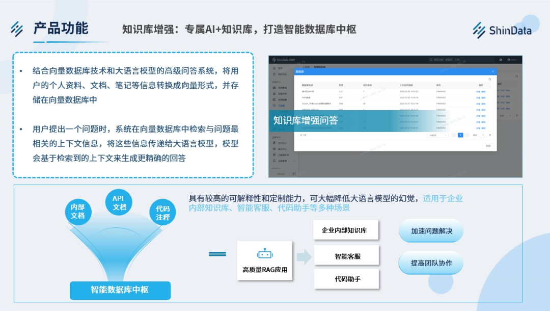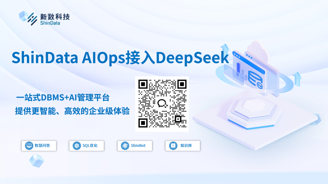ShinData AIOps智能运维平台是一个拥有先进AI能力的数据库管理智能生态体,结合LLM与Agent技术,提供智慧问答、知识库增强问答、数据库问答、SQL优化以及ShinBot智能体等能力,构成一个智能协同的数据库AIOps生态系统,解决面临大量数据库实例时所遇到的性能瓶颈、开发管控难度大等复杂问题。