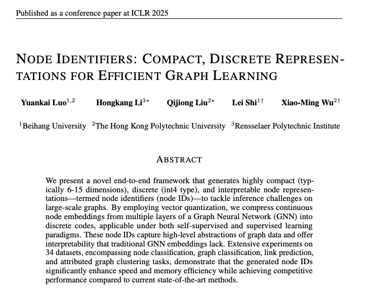 论文题目:Node Identifiers: Compact, Discrete Representations for Efficient Graph Learning