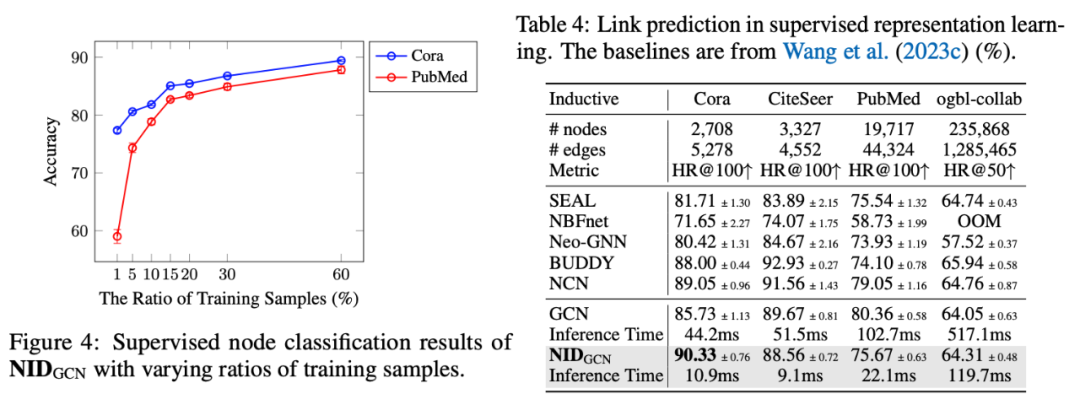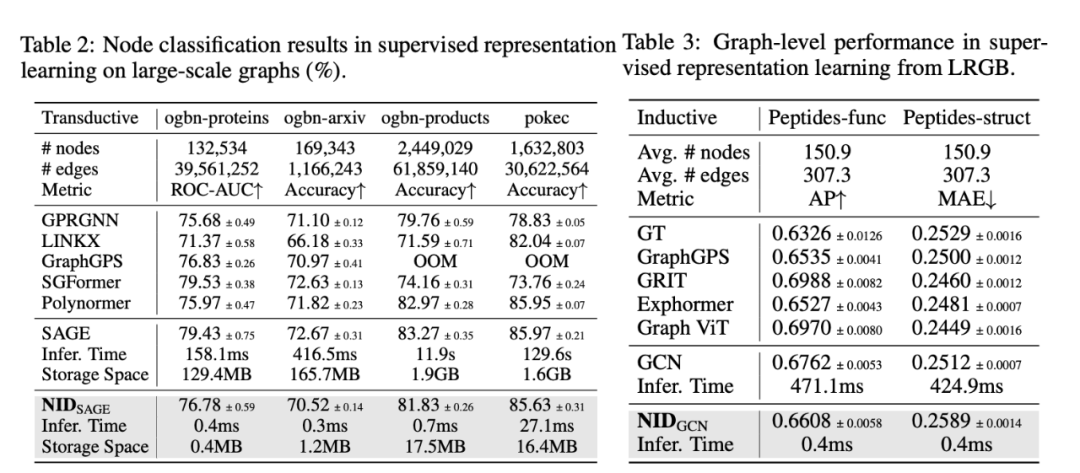 推理加速:在 ogbn-products (节点数百万级)上,NID 推理时间从11.9s降至0.7ms。