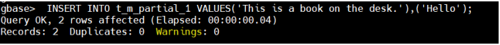 INSERT INTO t_m_partial_1 VALUES('This is a book on the desk.'),('Hello');