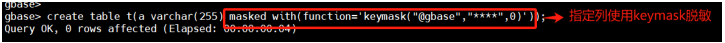 create table t(a varchar(255) masked with(function='keymask("@gbase","****",0)'));