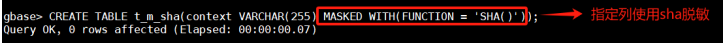 CREATE TABLE t_m_sha(context VARCHAR(255) MASKED WITH(FUNCTION = 'SHA()'));
