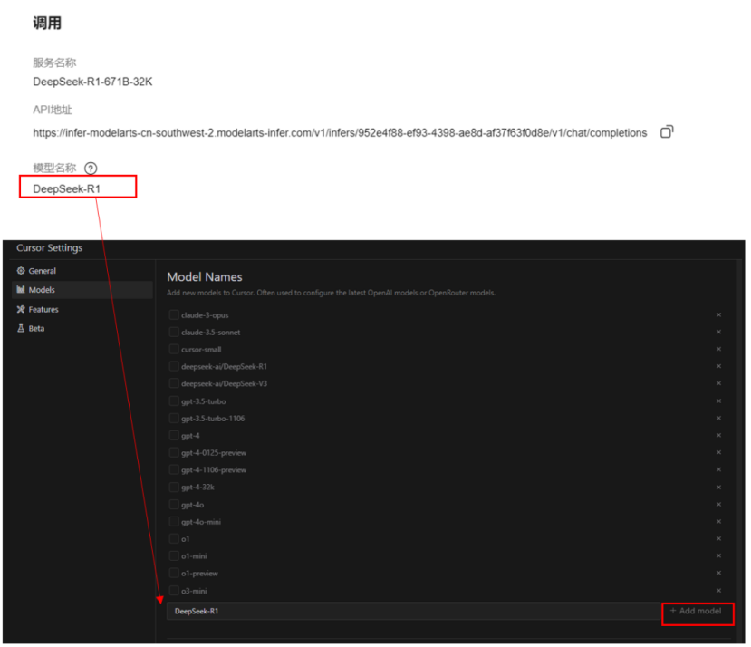 (2) 输入 MaaS 调用界面的模型名称后,点击 Add Model