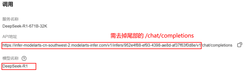 -基础 Url: 之前步骤中 MaaS 服务的基础 API 地址,需要去掉地址尾部的“/chat/completions” 后填入