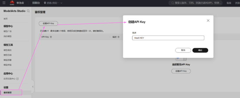 2.1 MaaS 控制台创建 API Key: