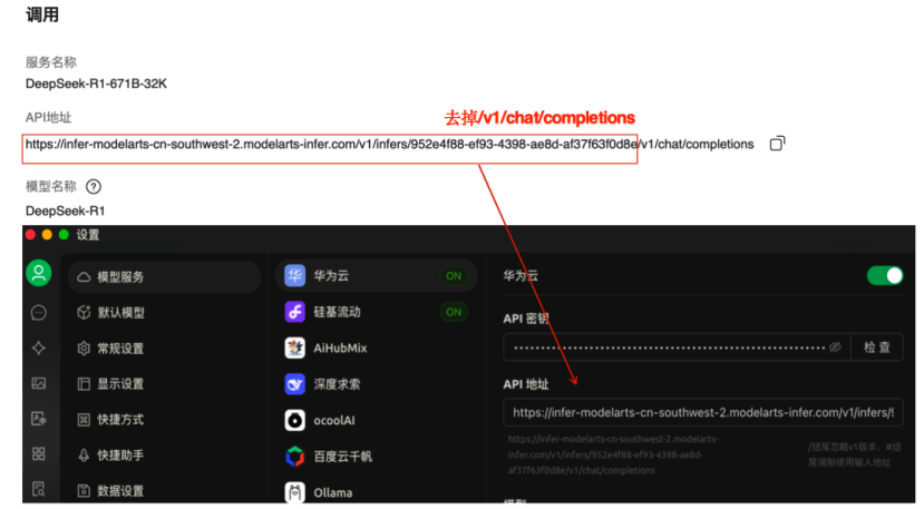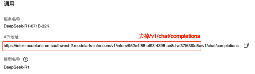 API 地址:步骤 1.2-(2) 中 MaaS 服务的基础 API 地址,需要去掉地址尾部的“/v1/chat/completions” 后填入。