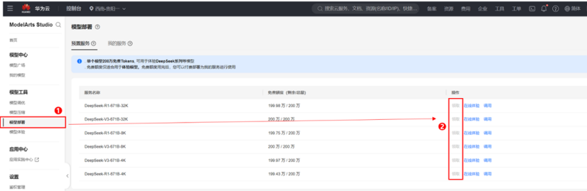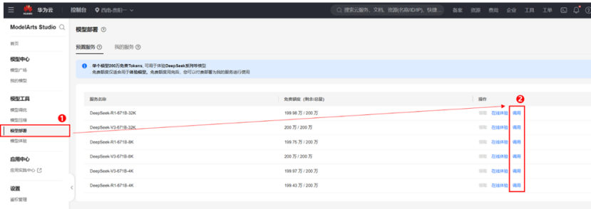 https://console.huaweicloud.com/modelarts/?locale=zh-cn®ion=cn-southwest-2#/model-studio/deployment