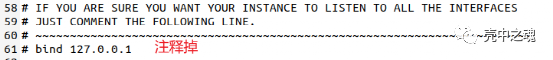 将 Redis监听在 0.0.0.0 是十分危险的,所以需要修改 Redis 监听端口,在 Redis 的配置文件 redis.conf 中进行设置,找到包含 bind 的行,将默认的 bind 0.0.0.0 改为内网IP,然后重启Redis