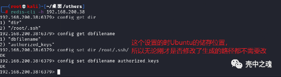 config get dir #检查当前保存路径config get dbfilename #检查保存文件名config set dir /root/.ssh/ #设置保存路径config set dbfilename authorized_keys #设置保存文件名