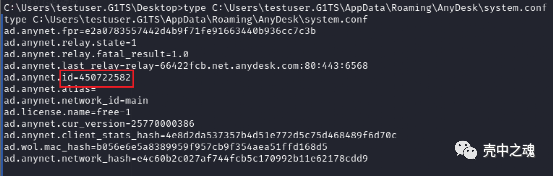 echo ad.anynet.pwd_hash=85352d14ed8d515103f6af88dd68db7573a37ae0f9c9d2952c3a63a8220a501c >> C:\Users\用户目录\AppData\Roaming\AnyDesk\service.confecho ad.anynet.pwd_salt=cb65156829a1d5a7281bfe8f6c98734a >> C:\Users\用户目录\AppData\Roaming\AnyDesk\service.conf