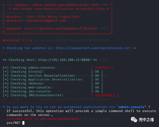一个是jboss全反序列化漏洞检测的,使用方法就不介绍了,全中文+图形界面下载地址:https://cdn.vulhub.org/deserialization/DeserializeExploit.jar下载地址:joaomatosf/jexboss: JexBoss: Jboss (and Java Deserialization Vulnerabilities) verify and EXploitation Tool (github.com)python ./jexboss.py -host http://192.168.200.43:8080/