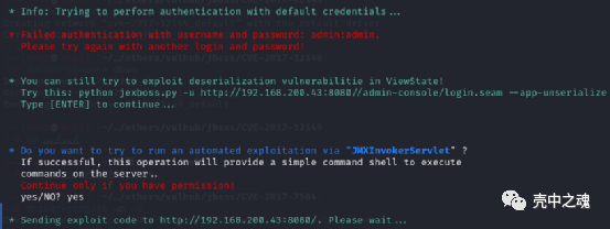 地址:Vulhub - Docker-Compose file for vulnerability environment这里用vulnhub搭建的环境是需要密码的,密码为admin:admin,但是我们模拟的环境是未授权访问,也就是不用密码就能登陆控制台,所以就假设不需要密码吧,密码文件:server/default/conf/props/jmx-console-users.properties打开后找到addurl栏,这里有两个栏,一个是java.net.url,另一个是java.net.string,似乎不管是那个都可以我在这里出现了问题,不管怎么上传都找不到这个地址,所以下面就只写一下过程有一些文章里面写了要返回页面点击apply change理论上如果成功上传后,在控制台页面的jboss.web.deployment会显示包如果部署成功,就可以打开包页面,假设刚才上传的包名为shell.war,所以要打开:8080/shell/,然后就会看到包里面的内容,如果里面有一个名为hack.jsp的木马,那么我们就可以打开:8080/shell/hack.jsp,然后连接即可经过查看本地文件,发现并没有上传,没有流量经过,不知道是服务器问题还是环境问题,但是方法就是这样的环境搭建:Vulhub - Docker-Compose file for vulnerability environment搭建完后打开,同样打开JMX Cpnsole,这里一样是有密码的,密码为admin:vulhub,密码文件路径:/server/default/conf/props/jbossws-users.properties然后把页面拉到最下面,找到两个deploy的标签,在框内输入war包的地址,然后点击invoke这次上传的时候确实有流量了,但是上传的却不完整,所以也没有办法成功复现,我觉得应该是vulnhub的环境问题JBoss Administration Console搭建环境:Vulhub - Docker-Compose file for vulnerability environment首先打开Administration Console,使用vulhub搭建的环境是有密码的,但是我们要模拟的是没有密码或者是弱口令的情况下,所以就直接登入了登入后打开Web Application (WAR) 页面,上传恶意WAR包上传成功后查看一下上传的包是否正常开启,默认是正常开启然后访问8080/hack/hack.jsp即可,路径为war内文件名由于反序列化漏洞的攻击方式都是一样的,只是漏洞发生的文件和成因不同,所以就以JBoss 5.x/6.x 反序列化漏洞(CVE-2017-12149)为例子过一遍流程JBoss 5.x/6.x 反序列化漏洞(CVE-2017-12149)该漏洞存在于http invoker组件的ReadOnlyAccessFilter的doFilter中,在/invoker/readonly请求中,服务器将用户提交的POST内容进行了Java反序列化使用环境:Vulhub - Docker-Compose file for vulnerability environment访问:8080/invoker/readonly,页面返回状态码500说明存在漏洞下载地址:joaomatosf/JavaDeserH2HC: Sample codes written for the Hackers to Hackers Conference magazine 2017 (H2HC). (github.com)javac -cp .:commons-collections-3.2.1.jar ReverseShellCommonsCollectionsHashMap.java