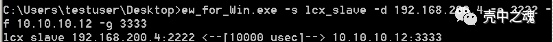 ew_for_Win.exe -s lcx_slave -d 192.168.200.4 -e 2222 -f 10.10.10.12 -g 3333
