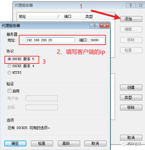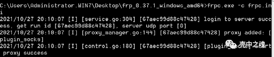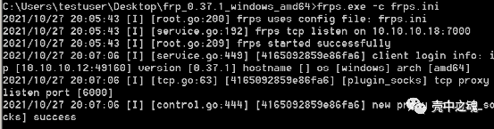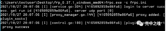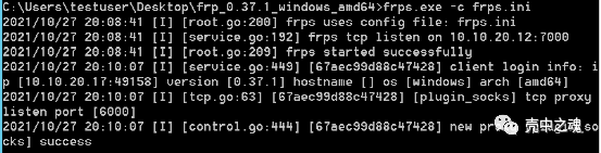 [common]server_addr = 192.168.137.174 //frps的ipserver_port = 7000 //对应的端口[plugin_socks5] //这个是额外加的,用于创建一个socks5的通道,可以给其他主机连接type = tcpremote_port = 6000plugin = socks5