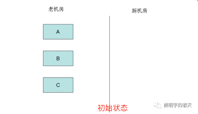 假设有3个节点(A、B、C)构建的RabbitMQ集群在老机房