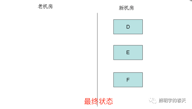 本篇文章,我们的目的就是要在不丢失元数据和消息的情况下使用新机房的3个节点(D、E、F)代替老机房的老节点(A、B和C),从而实现机房之间的迁移.