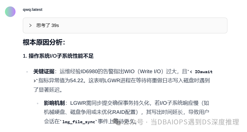 在速度上,大家在测试的时候会发现QwQ输出速度特别快,所以觉得QwQ速度比deepseek-r1:32b要好,其实这是一个错觉。实际上当时的输出都是思考过程,QwQ在思考时输出的内容很多,通过观察思考过程,我们发现QwQ是不断通过自我对话来完善输出的,其思考模式与DeepSeek-r1不同,经过多轮对话,QwQ不断完善输出,最后获得一个最满意的版本来输出。一个问题QwQ思考了39秒,同样的问题我们测试了多次,思考时间差不多,都在三十多秒范围内。