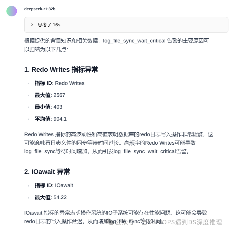 完全相同的问题,在相同的硬件上,Deepseek-r1:32b花了16秒的思考时间,得到的推理结果与QwQ差不多,从这个比较来看,QwQ只是输出速度更快,输出的推理过程更加丰富,真正的思考速度并不比DeepSeek-r1:32b更快。