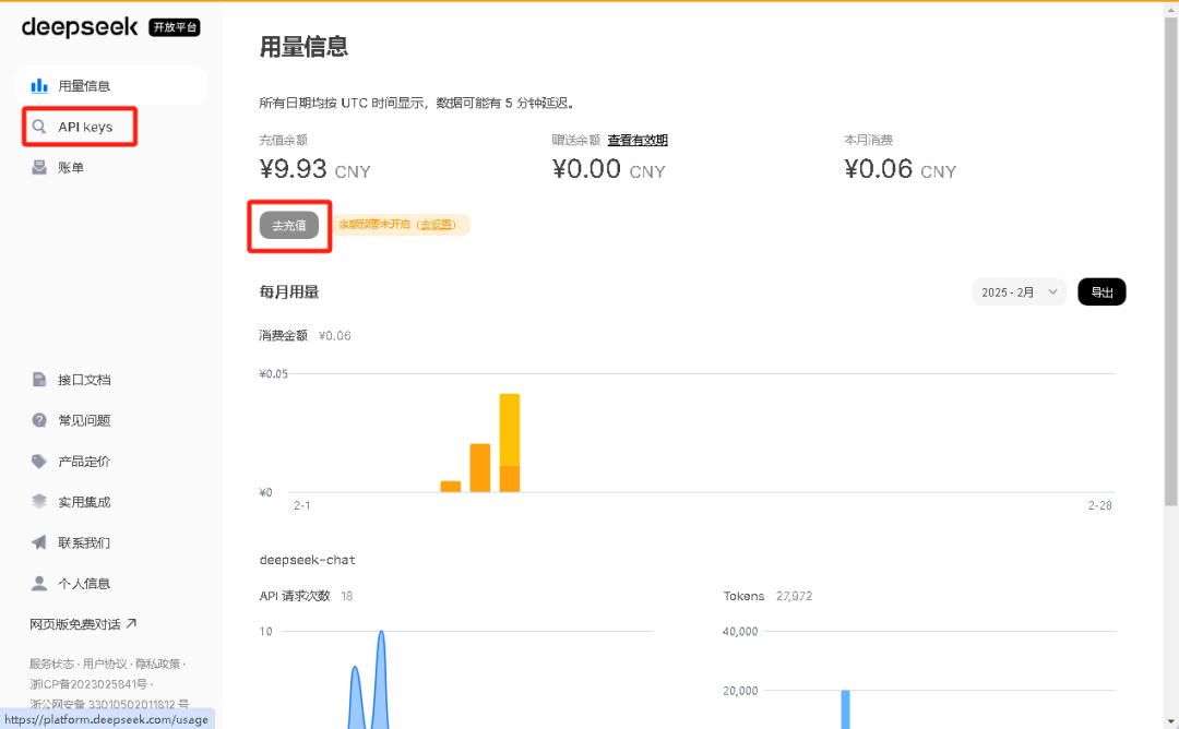 登录www.deepseek.com,注册登录后点击左上角"API开放平台"