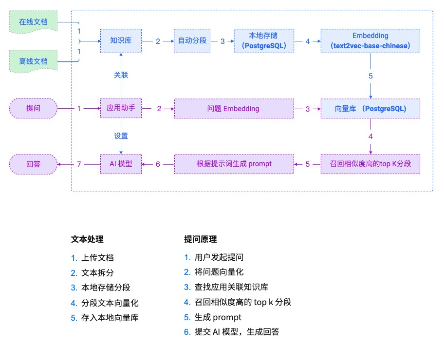 比如开源知识问答工具MaxKB的原理,可以看下面这张图: