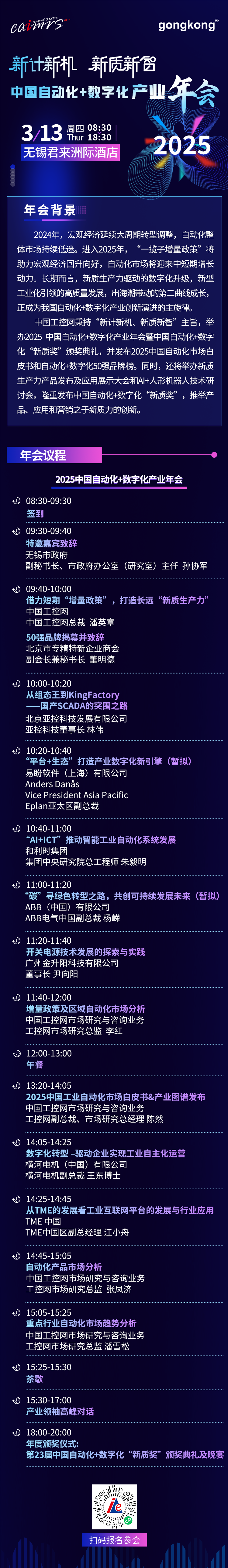 2025年3月13日,无锡君来洲际酒店即将迎来工业领域年度盛典——2025中国自动化与智能制造大会(CAIMRS)!亚控科技董事长林伟先生将出席本次会议并发表《从组态王到KingFactory——国产SCADA的突围之路》的主题演讲,与行业龙头、专家学者与创新先锋共探智能制造未来。