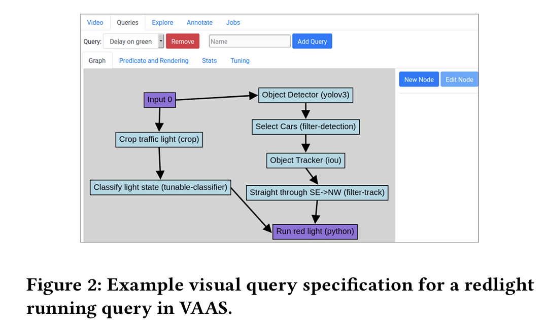用户通过图形化界面指定查询逻辑,而不是直接定义执行计划。例如,用户可以描述“找到包含红灯和车辆穿过特定区域的视频片段”。