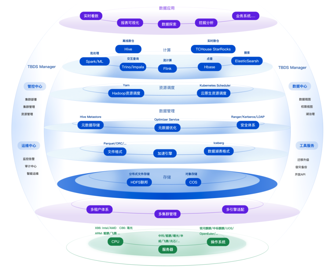 实际上,在适配方面,腾讯云TBDS早已涵盖国产操作系统、服务器、数据库等领域,已完成鲲鹏、中科可控、中科曙光、申威等国产生态兼容性认证,以及海光、飞腾等主流x86/arm国产化处理器,中标麒麟、银河麒麟、欧拉、统信、红旗等国产化操作系统的适配工作,在金融行业拥有庞大的用户基础。