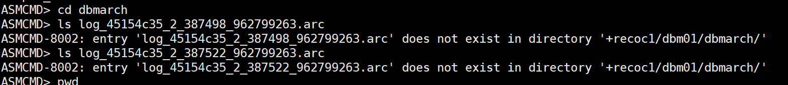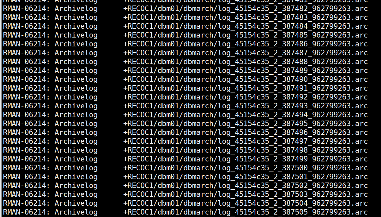 RMAN-06214: Archivelog +RECOC1/dbm01/dbmarch/log_45154c35_2_387482_962799263.arc