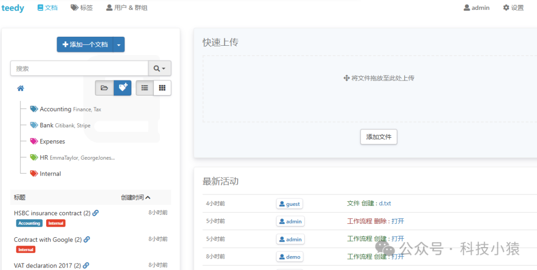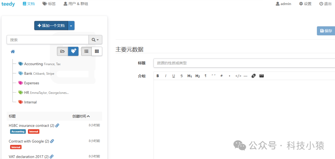 企业知识库:Teedy可以作为企业内部知识库,帮助员工快速获取和共享公司文档,提高工作效率。