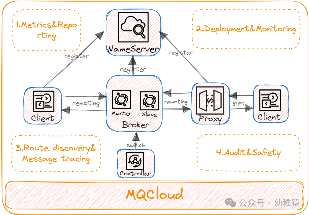 MQCloud是一个专为RocketMQ设计的企业级一站式服务平台,集成了多种功能,包括客户端SDK、运维工具、监控系统和预警机制,旨在简化分布式消息队列的管理工作,提高系统的稳定性和安全性。它提供了一个跨集群的解决方案,使得管理多个RocketMQ集群变得轻松且透明。