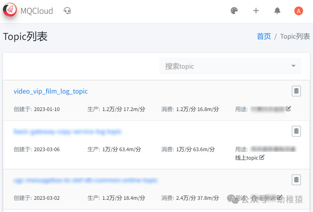 该镜像包含了部署好的MQCloud,一个部署好的RocketMQ集群(Nameserver+broker),自动创建的topic,一个模拟生产程序和一个模拟消费程序。