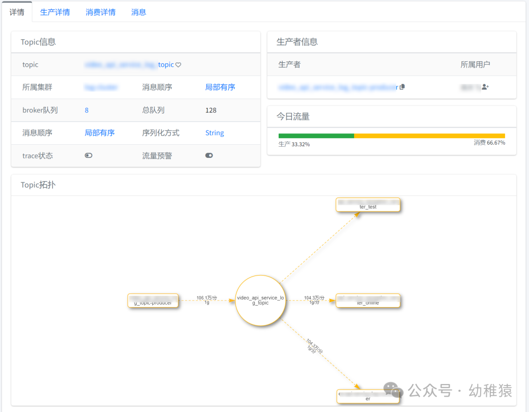 主题和队列监控:监控特定主题和队列的生产和消费情况,包括消息数量、积压情况等。