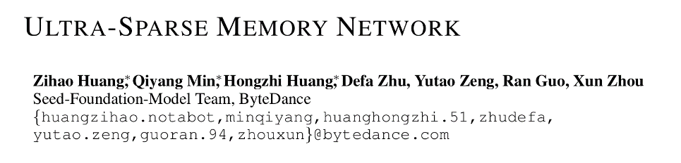 随着语言模型规模的不断增长,模型对于计算资源的消耗呈指数级增长,推理成本和访问效率已成为限制大模型规模应用的关键瓶颈。尤其是在实时应用程序中,资源受限的条件下,这一问题尤其突出。为了应对这一挑战,专家学者们提出了多种解决方案,如专家混合模型(Mixture of Experts, MoE)和乘积键存储(Product Key-based Memory, PKM)。然而这些方法在推理过程中仍然会高内存占用,消耗大量的计算资源。基于这一背景,本次为大家带来深度学习领域顶级会议ICLR 2025的文章《Ultra-Sparse Memory Network》。这是字节跳动豆包大模型团队近日发布的一种全新的稀疏模型架构——超稀疏存储网络(Ultra-Sparse Memory Network)。通过引入大规模、超稀疏的存储层,显著降低了推理延迟,同时保持了模型的性能。实验表明,UltraMem不仅在推理速度上超越了MoE模型,还具有更优秀的规模扩展性,为未来构建更大规模的模型铺平了道路。
