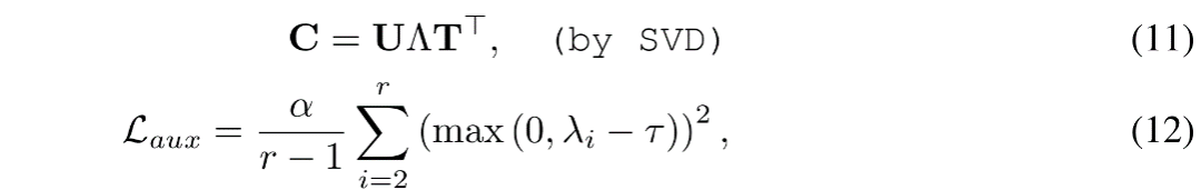 其中, Λ表示矩阵C的特征值,按降序排列,τ作为一个边界值,以防止C退化为秩为1的矩阵,α是损失的系数。