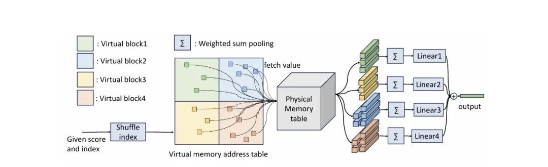 其中, 表示对应于第 p 个虚拟内存块的分数。通过上述公式,可以根据虚拟块索引首先查找和汇总值,然后将减少的物理值直接转换为减少的虚拟值。这个技巧将额外计算从