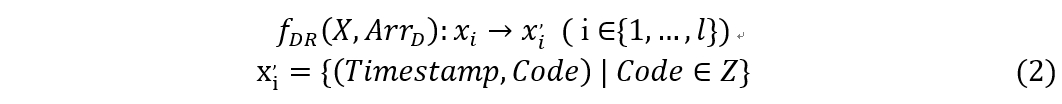 在通过 fDR 处理序列 X 中的数据点后,每个数据点 xi 将变为一个二元的 xi' ,仅包含时间戳和一个整数编码 Code。生成的序列 X 将采用以下形式: