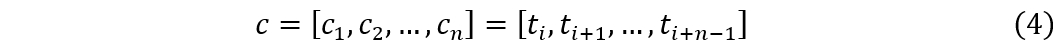 定义4(候选时间序列)c 是目标序列 T 中长度为 n 的子序列,从位置 i 开始(1 ≤ i ≤ m - n + 1),其序列长度等于 q 的长度。
