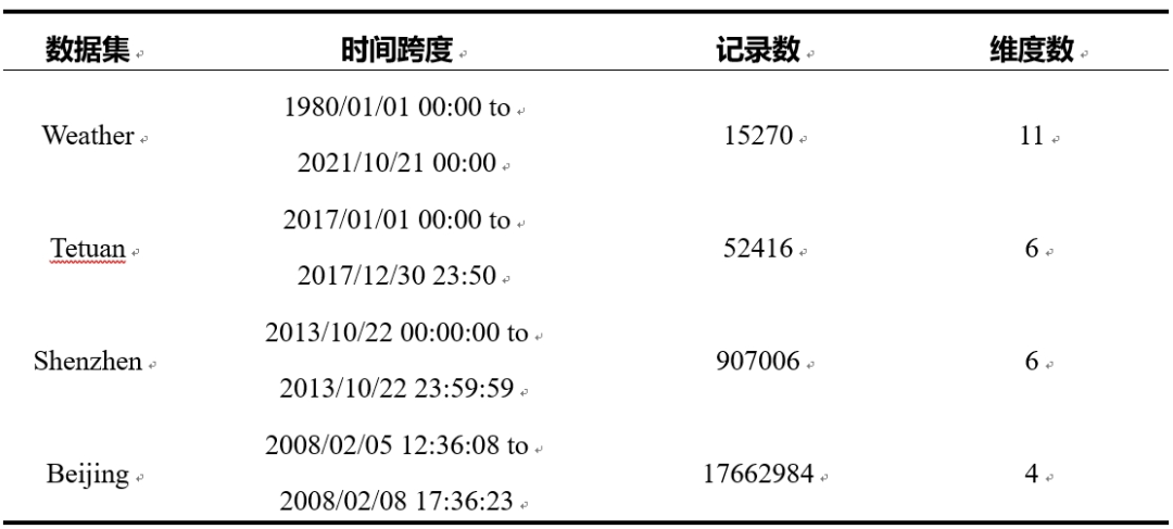 表1. 时间序列数据集及其属性