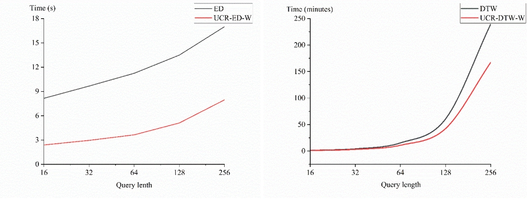 图5. 相似性查询算法随序列长度增长的时间变化